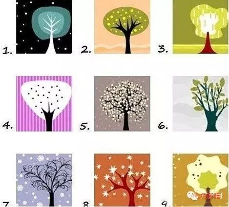 七色能量带您做一个有意思的测试,试想,你正在跟一群小伙伴玩捉迷藏,现在图中有九棵树,凭直觉你会躲在哪棵树后呢?