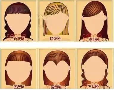 脸型大概分成:鹅蛋形,杏仁形,圆形,长圆形,方形,菱形六种。