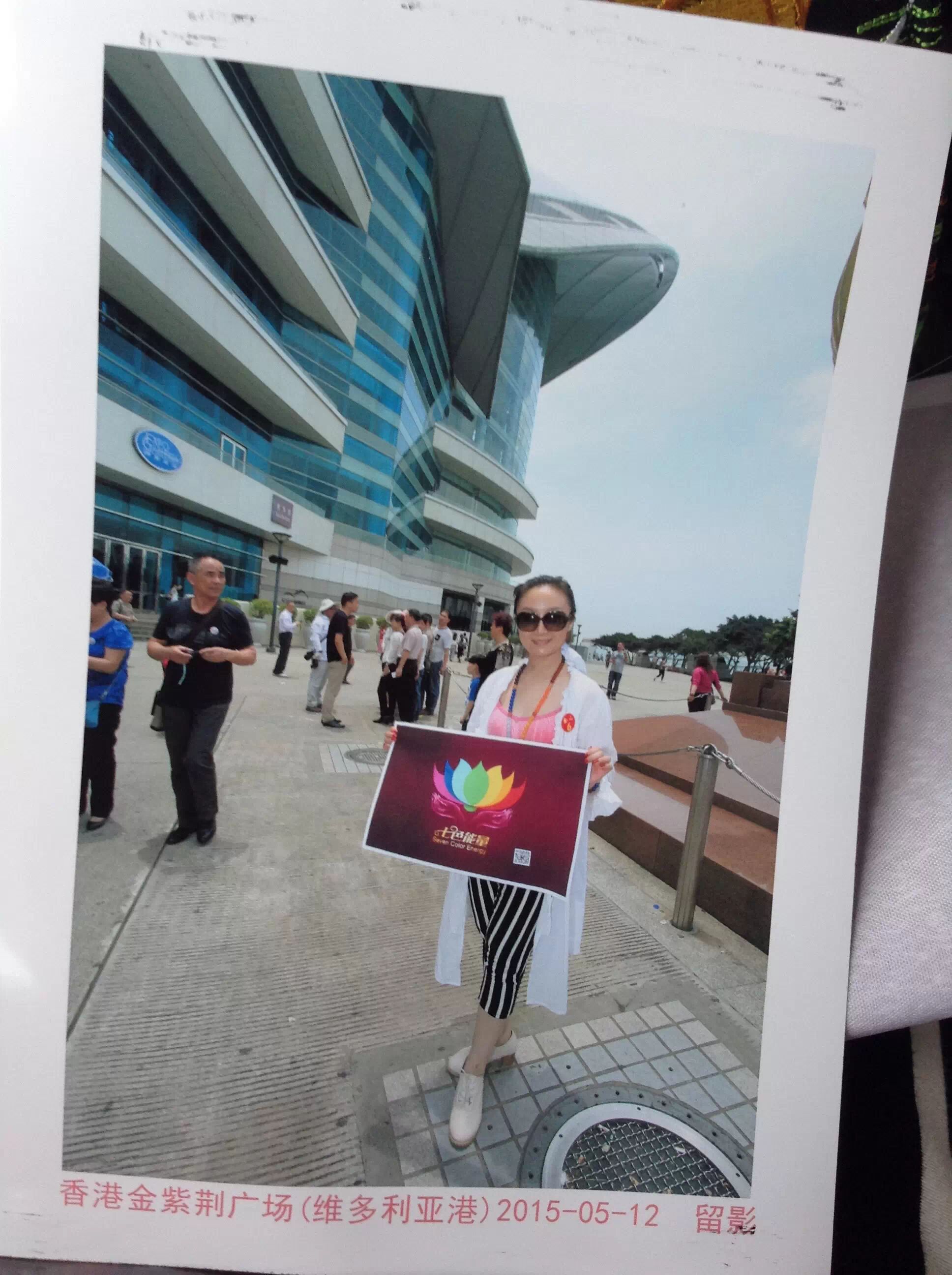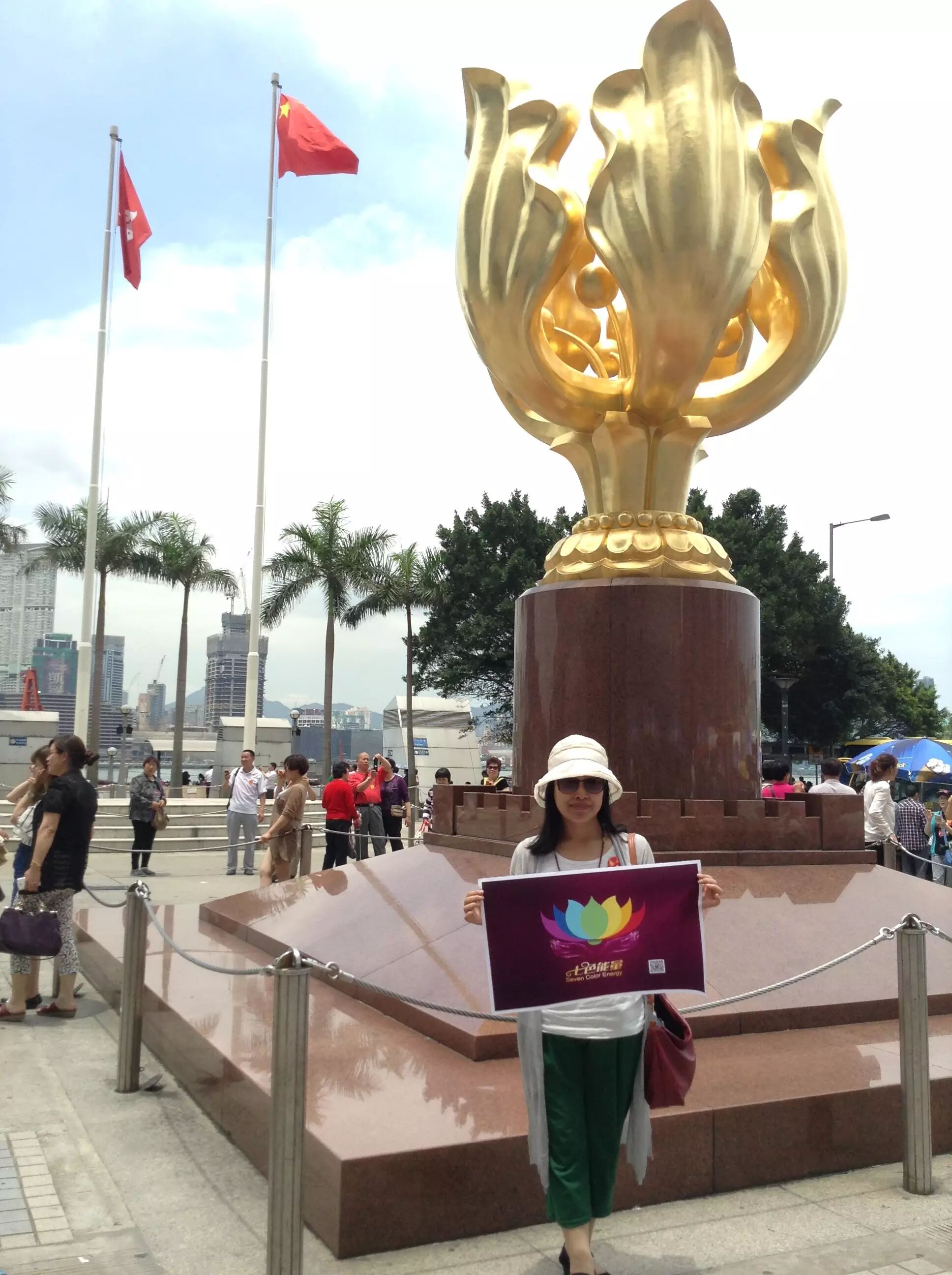 七色能量应用系统创始人中国玲子在香港金紫荆广场展示七色能量