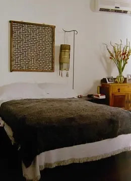 (2)床离玻璃窗太近:空透无依,不能脚踏实地,影响事业的发展。现代大都市往往楼前有楼、楼后有楼、楼边有楼,卧床过份地靠近窗户,使得卧室不能很好地保持其私密性;另外,由于城市变得日益繁杂,恼人的噪音将穿过这扇并不太厚的玻璃窗而影响您的睡眠;“窗下多梦”的说法也在我的实践中得到应验。据以前的风水书籍中记载,卧床太靠近窗户,容易导致“红杏出墙”,有此一说。