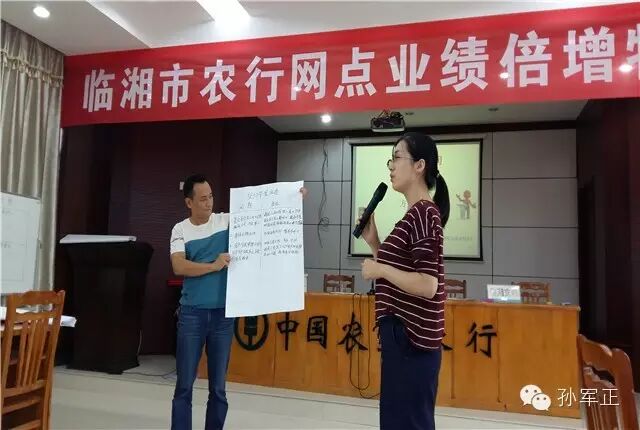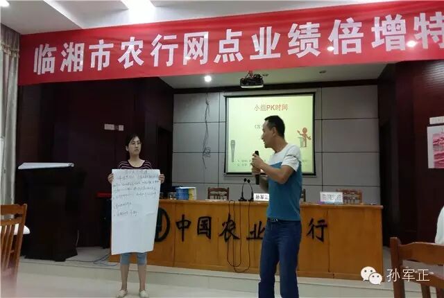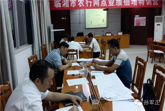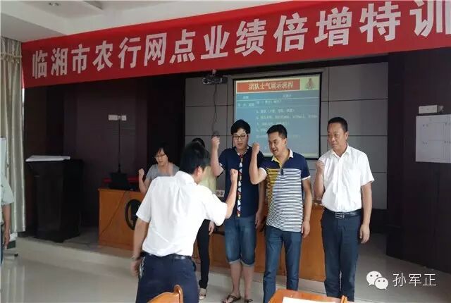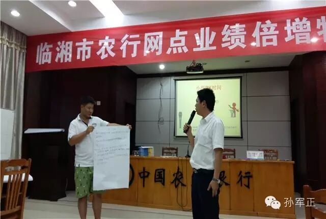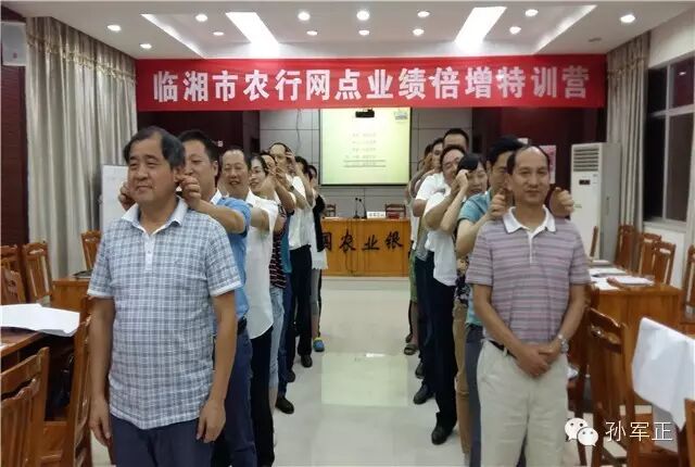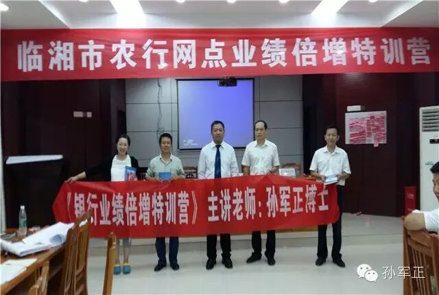 2015年9月13日,应中国农业银行湖南临湘市支行邀请,银行业绩倍增系统创始人、中国执行力研究院院长、中国执行力十强讲师孙军正博士专程飞赴湖南临湘市,为该支行40多位行长、副行长、网点负责人、后备干部及骨干员工培训了《网点业绩倍增特训营》课程,取得了预期的效果,获得了极大成功!