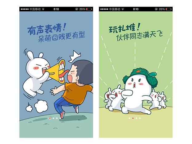以来往为例,来往是一款针对个人用户的及时通讯应用,主打扎堆、阅后即焚、敲门等与微信不一样有趣的功能,也是想给用户创造不一样的IM沟通方式。因此在引导页的设计上通过趣味性、甚至有点搞怪的动作与表情来表现来往是这样一款有趣、欢乐多的产品。