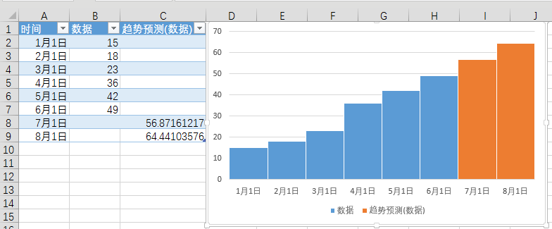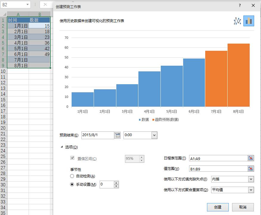 数据选项卡中新增了预测功能。