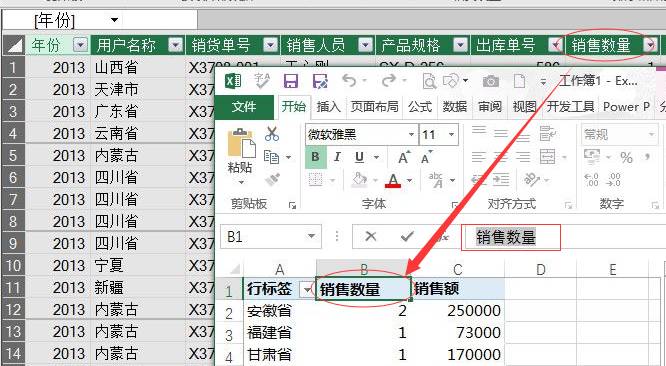 此外,基于数据模型创建的数据透视表,可以自定义透视表行列标题的内容了,即便与数据源字段名重复也无妨。
