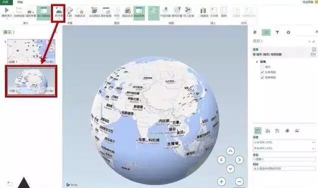 新发布的Office2016自带了Power Map的插件,使用方法和2013版的差不多。另外,它还能在播放的时候将二维地图和三维地球完美对接,形成电影里镜头拉伸的高端效果。