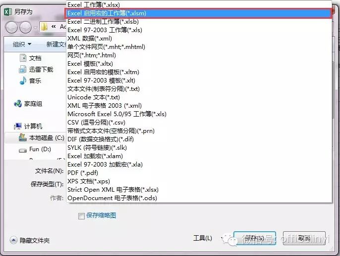 通过上述几步,就实现了数据合并转移。如果要将此代码保存在EXCEL工作薄中,将此EXCEL工作薄另存为“EXCEL启用宏的工作薄(*.xlsm)”即可,如下图:
