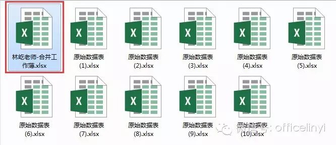 第一步:将多个需要合并的工作薄放在同一个文件夹下,并新建一个文件。如下图,我新建了一个名为“林屹老师-合并工作薄.xlsx”的工作薄。