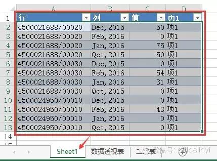 这时就自动生成了一个所有数据的一维明细表Sheet1,如下图: