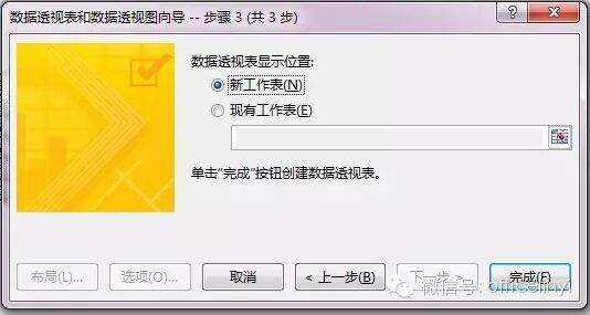 最后选择数据透视表显示位置在“新工作表”,点击“完成”。