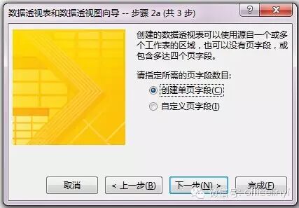 在“数据透视表向导——步骤2a”中选择“创建单页字段”,并继续下一步,如下图: